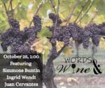 2025’s vintage of Word and Wine features creative non-fiction and a blend of poetry, Saturday October 25 at 1:00. Three excellent writers will present their work, in the Riesling Room. This is an opportunity to have wine, maybe a bite and hear essays from Simmons Buntin, the poetry Ingrid Wendt, and the bi-lingual poet , ... - 7